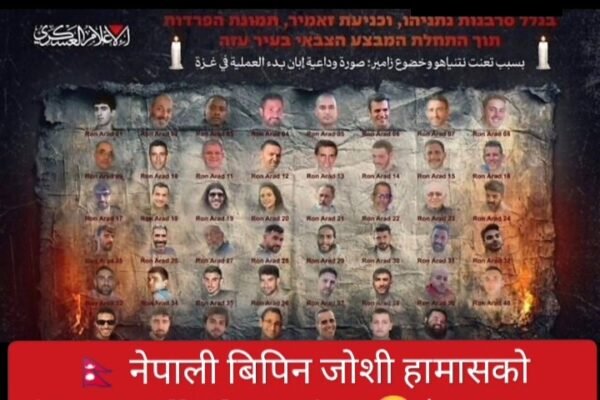 हामासले ४८ बन्दीको ‘फेयरवेल फोटो’ सार्वजनिक, नेपाली बिपिन जोशी पनि समावेश